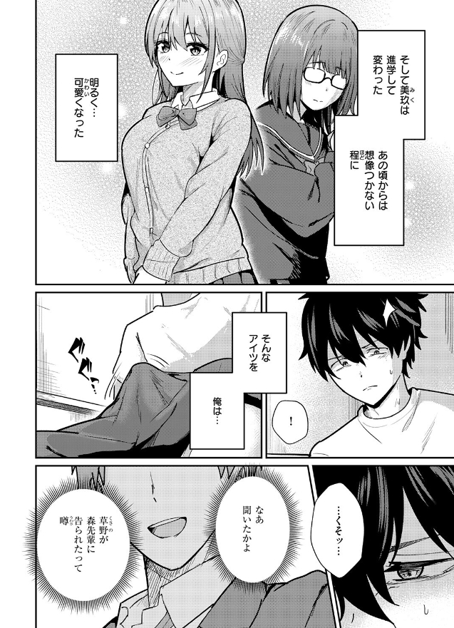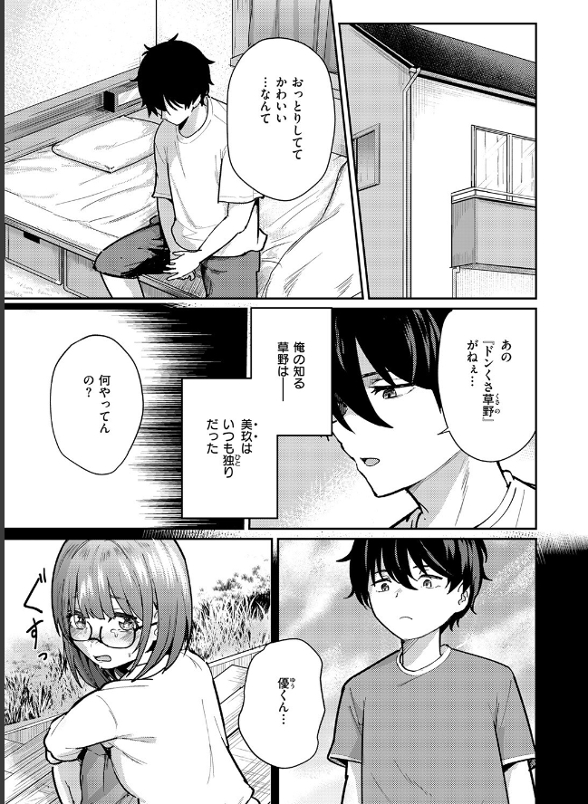 泣き虫で頼りなかったはずの幼馴染・美玖が、いつの間にか高嶺の花へと成長したことに焦りを感じる主人公・優。距離を置こうとする彼の不器用な拒絶が、美玖の内に秘めていた執着心と独占欲に火をつけます。幼い頃のパワーバランスが崩れ、美玖が「女」としての武器を剥き出しにして迫る、純愛と欲望が入り混じる濃密な一対一の対話が描かれます。