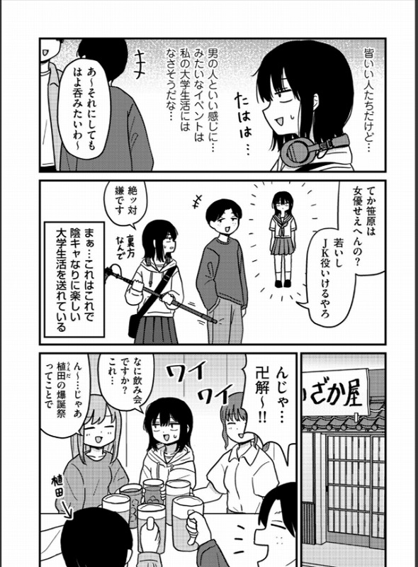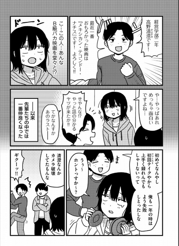 - 大学の映画研究会で出会った高野先輩。
