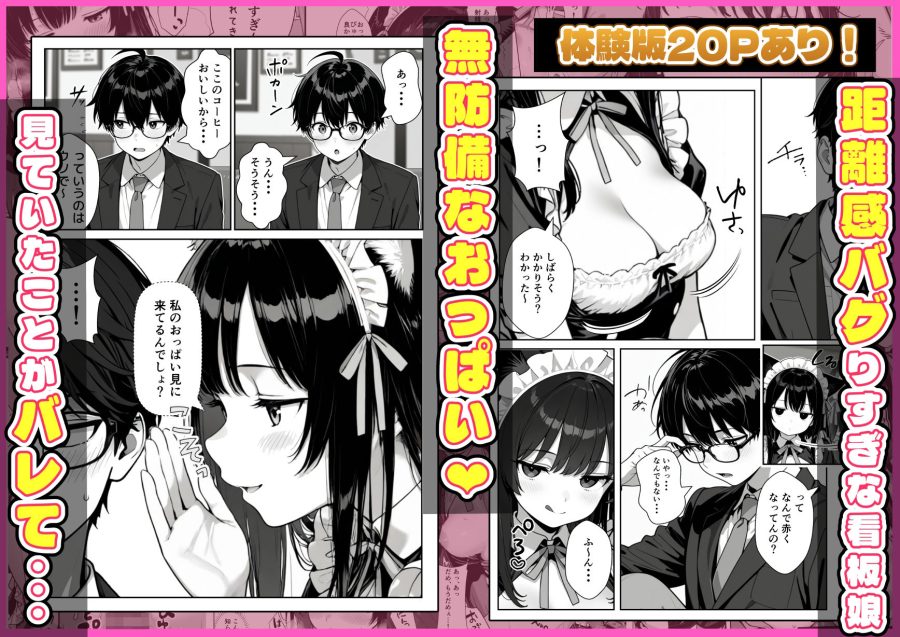 小悪魔なジト目メイドに翻弄され、極限まで溜め込まされた快楽を爆発させるカタルシスが魅力の一冊です。20ページの体験版で「しおり」の小生意気な魅力と緊迫感のある店内の空気を事前にしっかり味わえるため、安心して購入を検討できます。