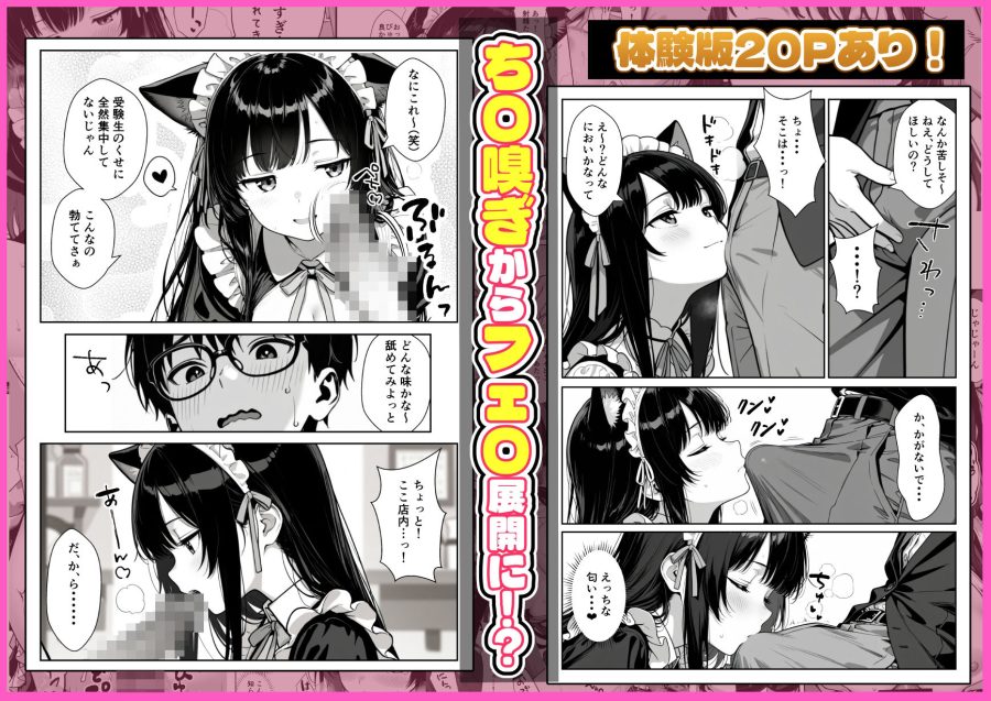 喫茶店で受験勉強中の主人公が、看板娘の猫耳メイド・しおりに弱みを握られたことをきっかけに、店内で執拗な性処理の標的にされる逆転劇です。