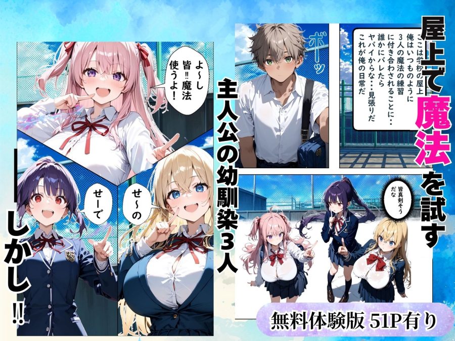 Hぷにんぐ 幼馴染魔法少女3人と魔法失敗でラッキースケベ連発のハーレム学園生活の紹介!